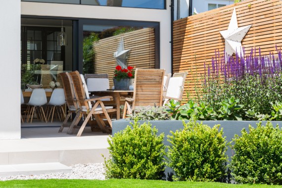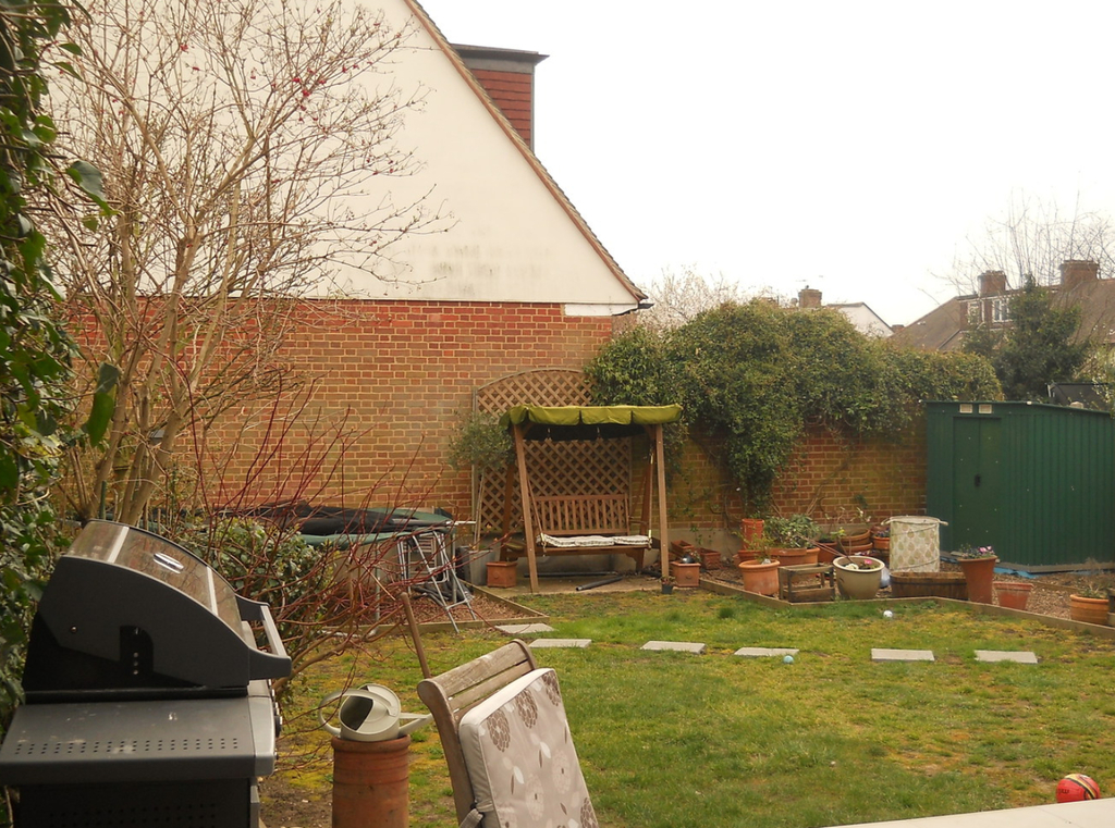 All existing planting and lawn were removed. A challenging 3m dia trampoline in direct sightlines from the living room was relocated and screened with three topiary bays.