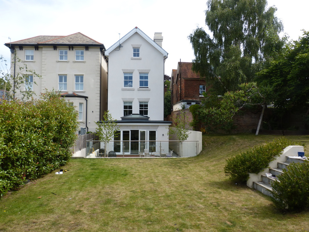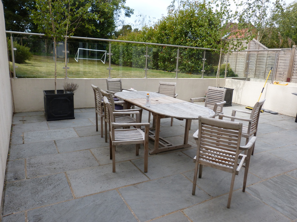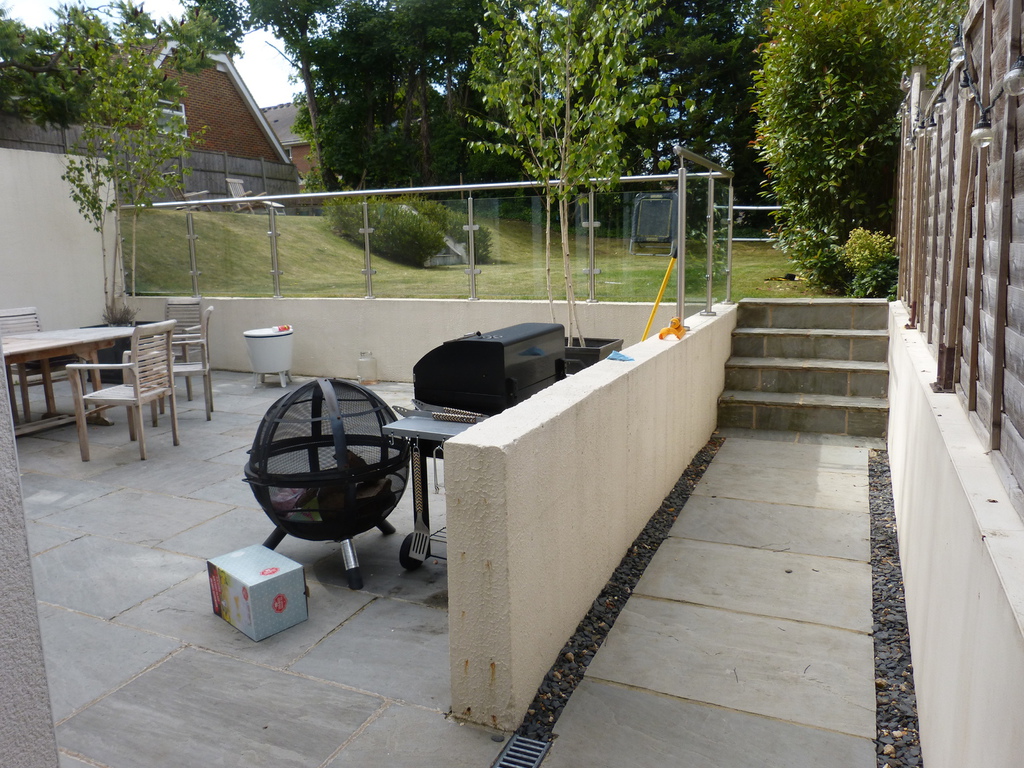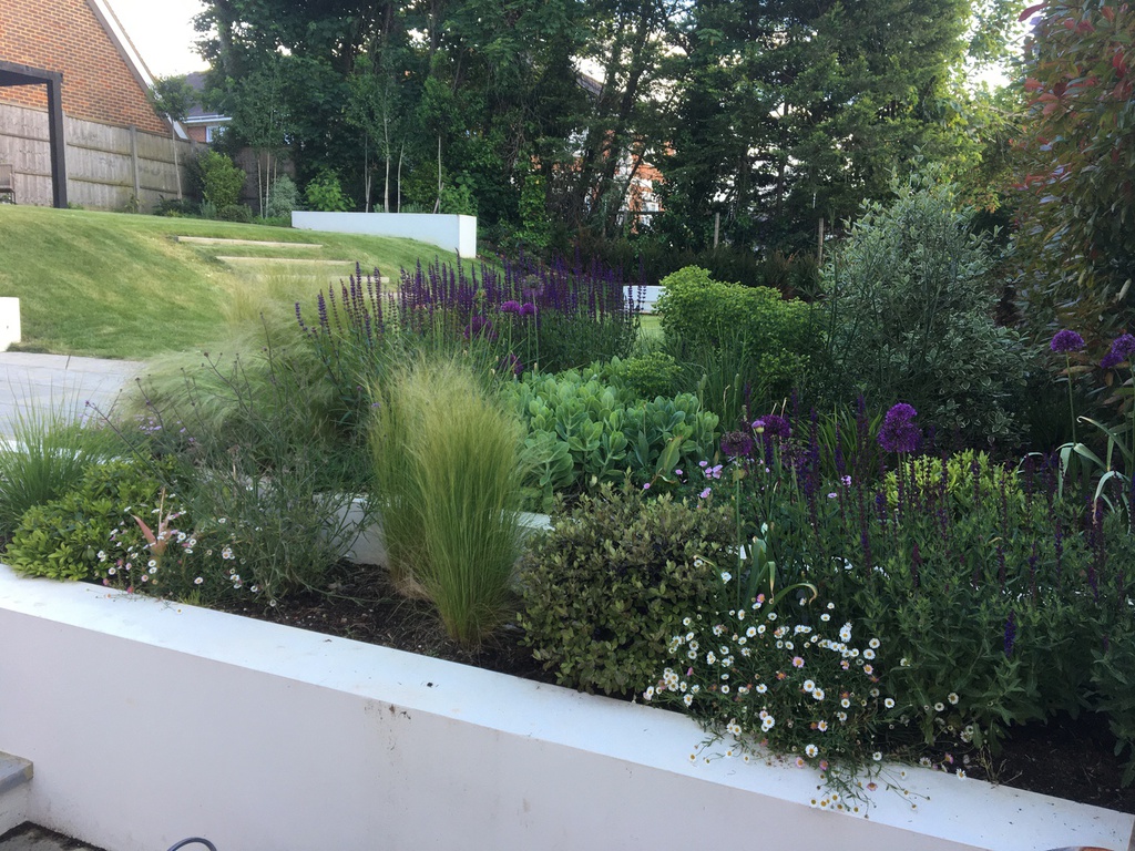 Whilst benefiting from a generous sized plot, the gardens of this stylish town house consisted of a characterless square of lawn. The patio, although large, was isolated from the garden, linked by a narrow set of steps to the side.