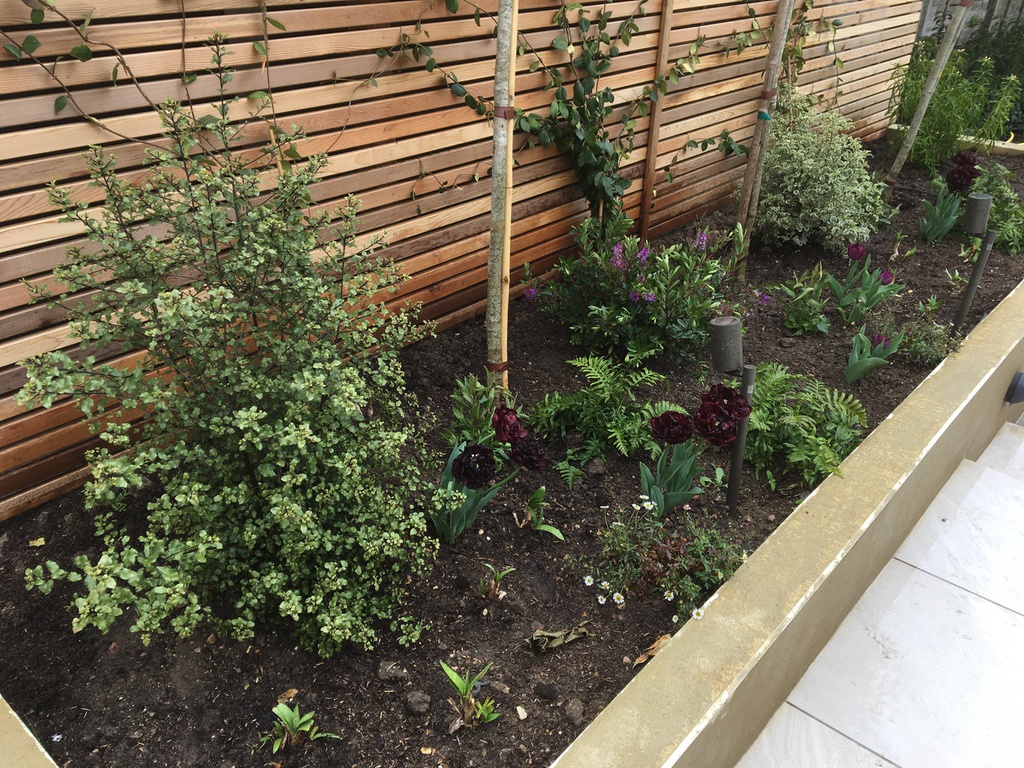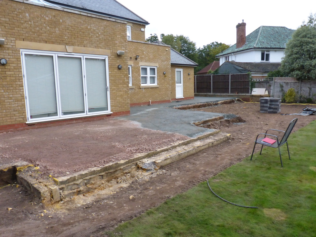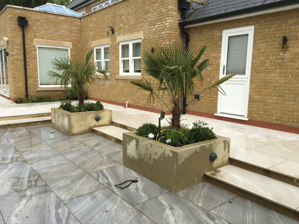 a phased project to replace and extend an existing patio and dated tired planting with an enlarged enetertaing space on two levels and more considered stylish