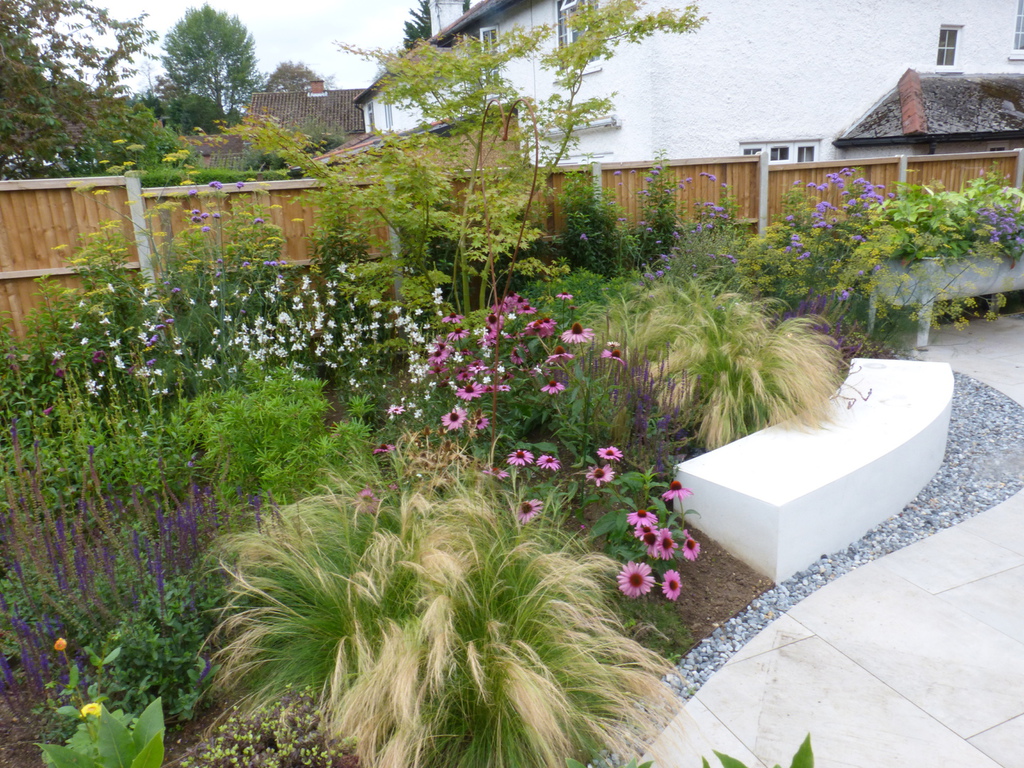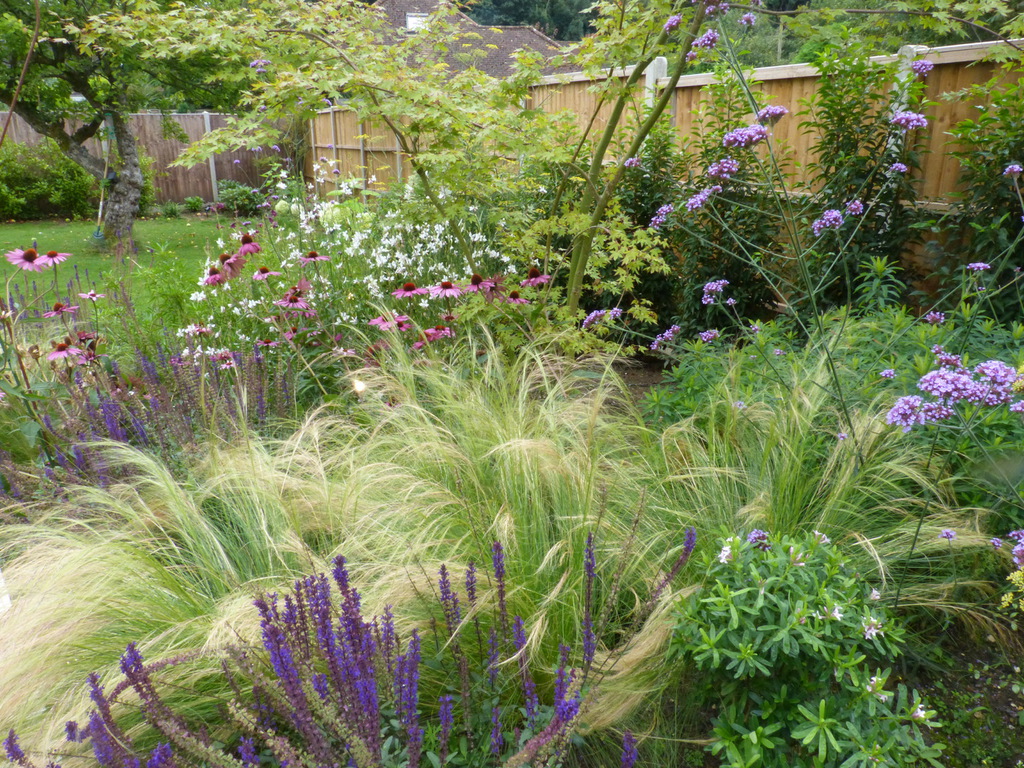 Prairie style planting including stipe tenuissima, echinacea and salvia provided long summer colour and autumn structure. Statuesque fennel, rosemary, thyme and sage provided for those summer BBQs.