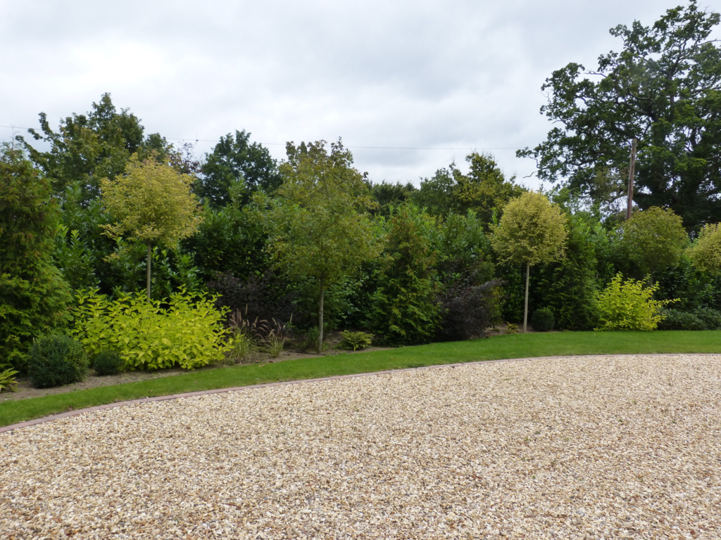 Perhaps the most impact was provided by the introduction of a curvilinear lawn into which specimen trees were placed providing a strong focal point.